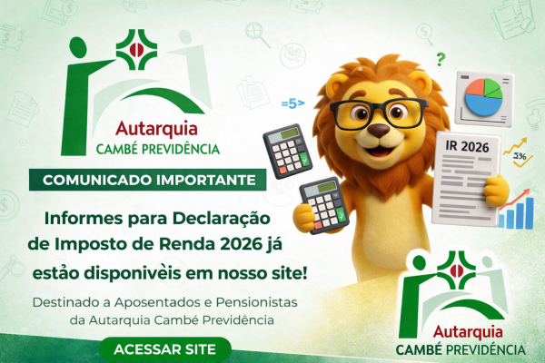 ⚠️ INFORMAÇÃO IMPORTANTE – IMPOSTO DE RENDA | CAMBÉ PREVIDÊNCIA Devido a ajustes técnicos nas informações enviadas ao eSocial, orientamos que os beneficiários que já tinham ou completaram 65 anos em 2025, bem como os aposentados com isenção por moléstia grave, aguardem um novo comunicado da Cambé Previdência antes de realizar o envio da declaração […]
