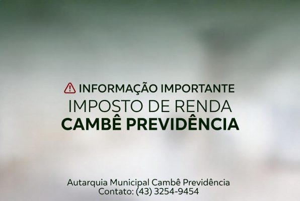 ⚠️ INFORMAÇÃO IMPORTANTE – IMPOSTO DE RENDA | CAMBÉ PREVIDÊNCIA Em complemento ao comunicado anterior, informamos que os beneficiários dos grupos abaixo, podem realizar o envio da Declaração de Imposto de Renda normalmente à Receita Federal. Aqueles que já tinham ou completaram 65 anos em 2025 ou mais; Aqueles que possuem isenção de IRRF por […]